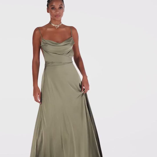 The high side slit adds graceful motion, while the deep open back finished with cross-tie detailing creates a striking, feminine finish.