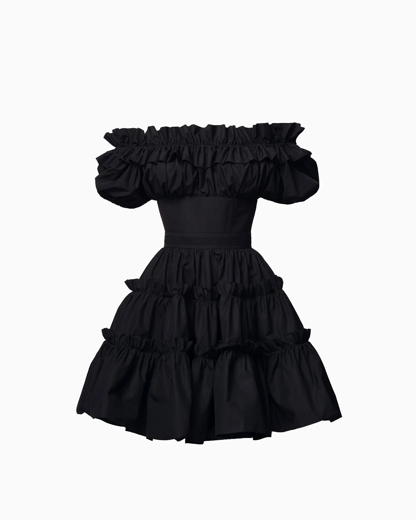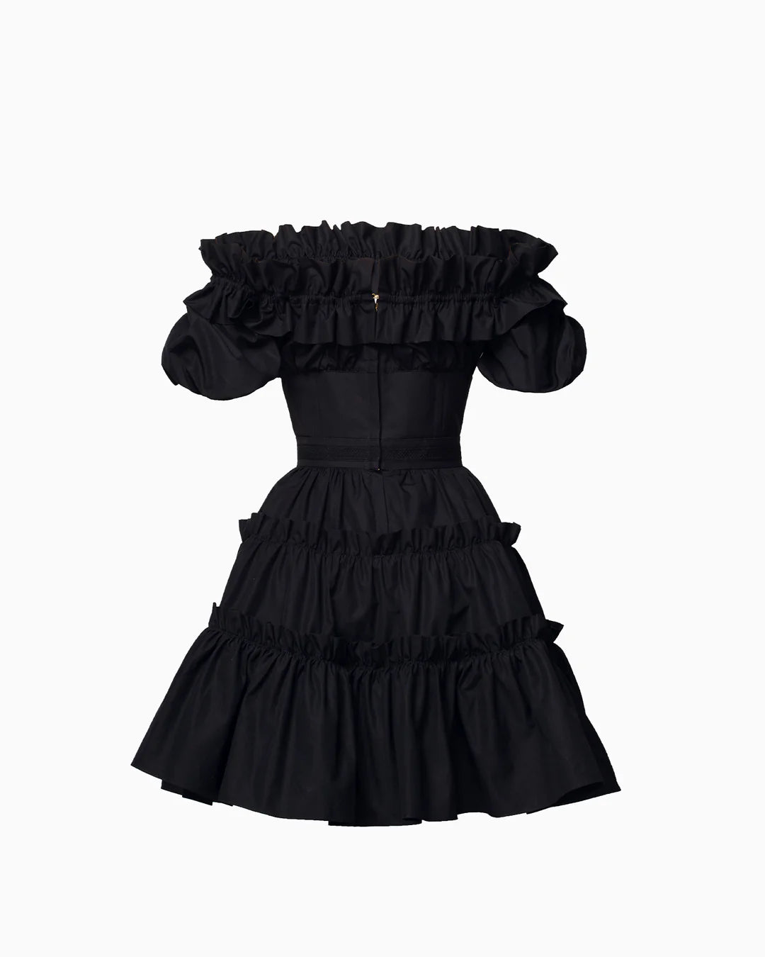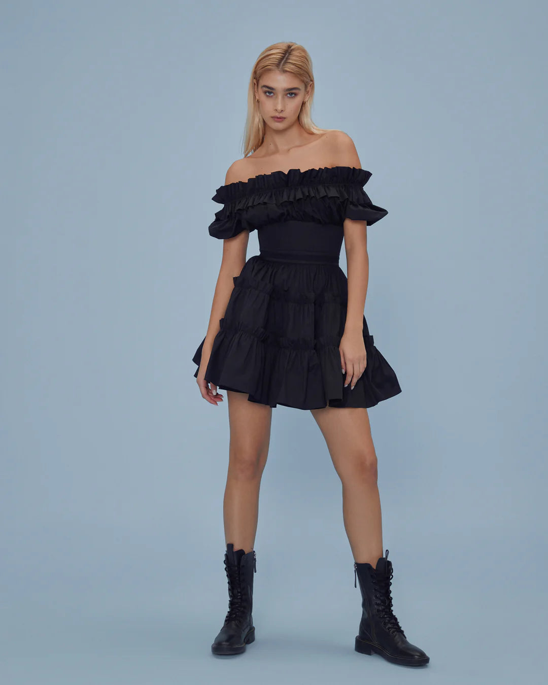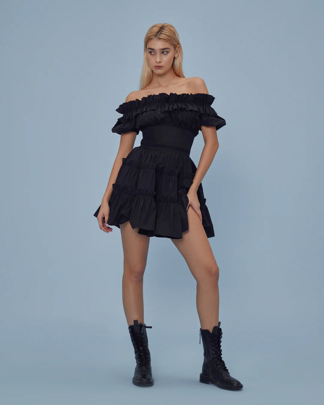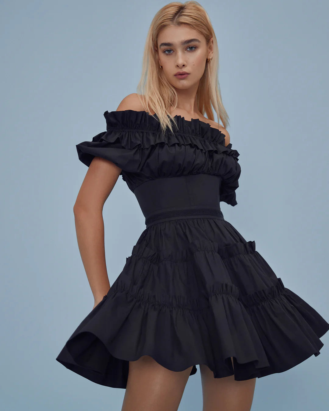 Coquelicots Obscura is an iconic black mini dress Designed with a perfectly balanced mini length, this dress features a truly handmade corset engineered to sculpt the waist and create a flawless, feminine fit.
