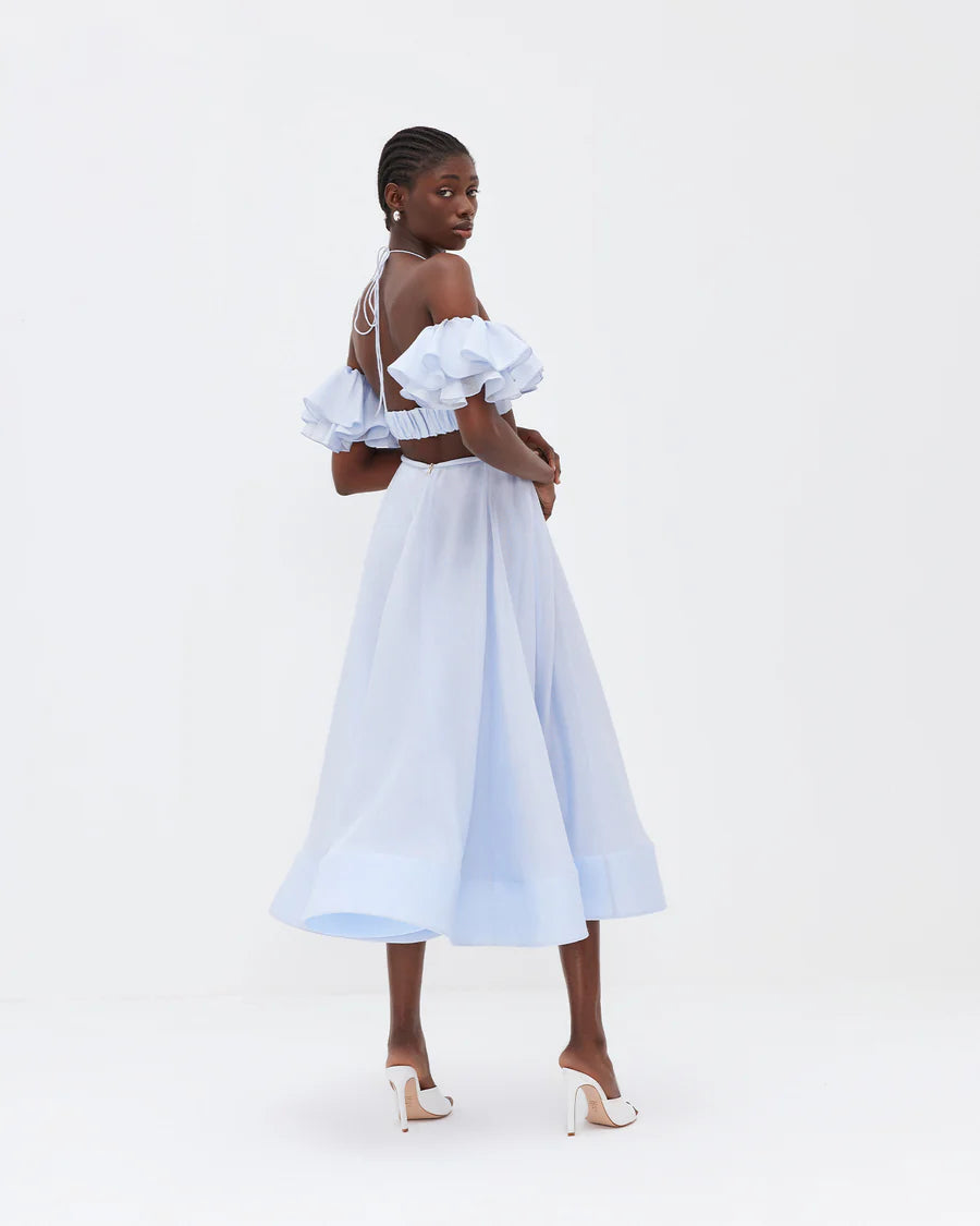 Light, breathable, and effortlessly chic, it’s perfect for coastal strolls, beach club afternoons, brunch dates, parties, or sun soaked escapes reminiscent of Saint Tropez. Pair it with the Myosotis Shorts or Myosotis Skirt for a perfectly coordinated look.