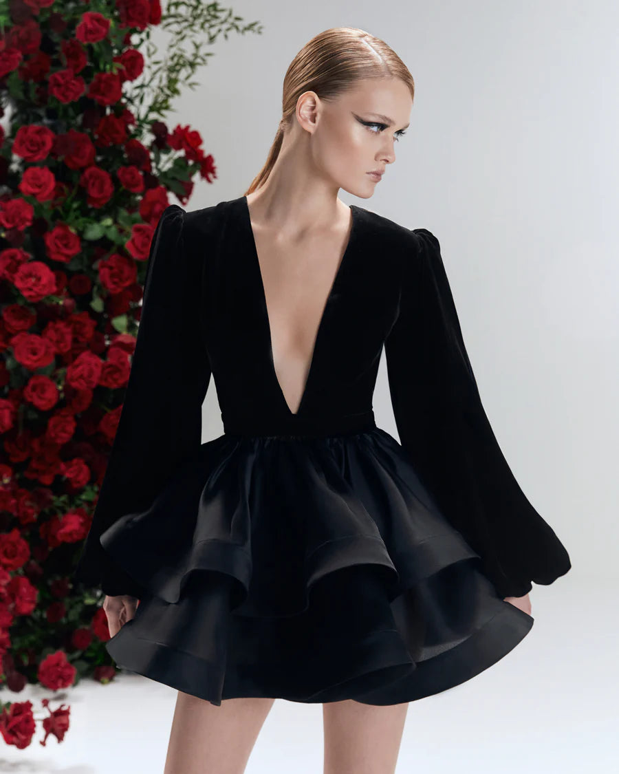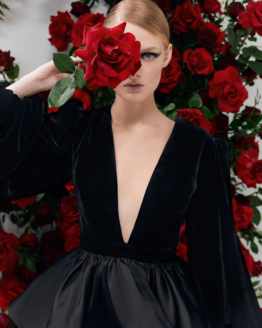 This signature piece blends luxe textures and timeless elegance crafted for evenings that demand a touch of mystery.