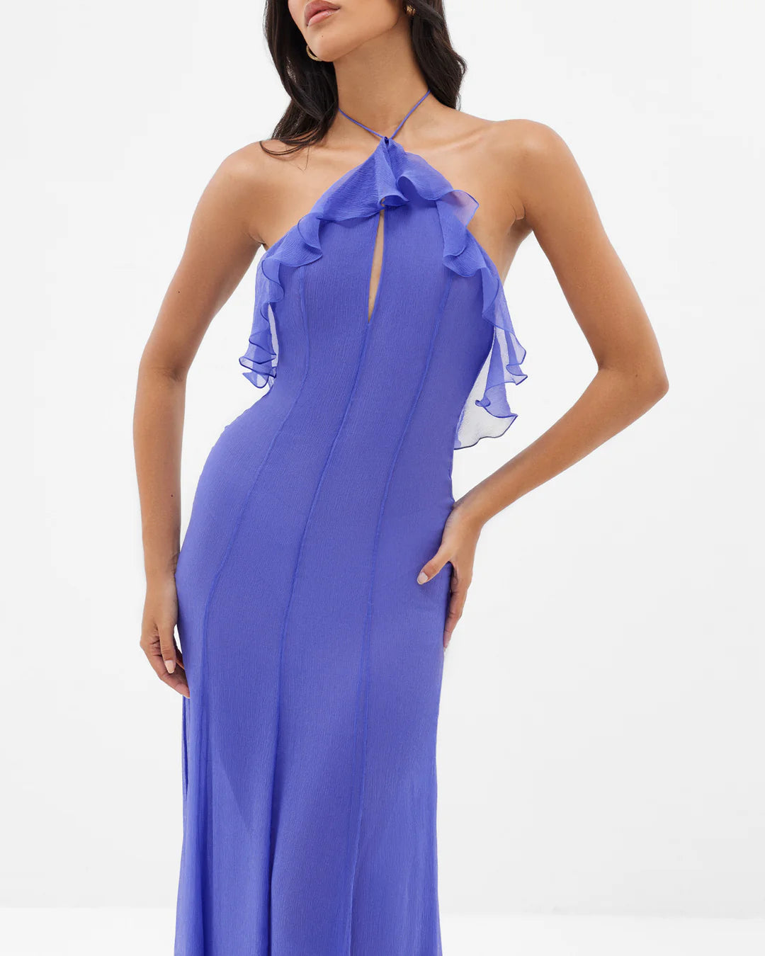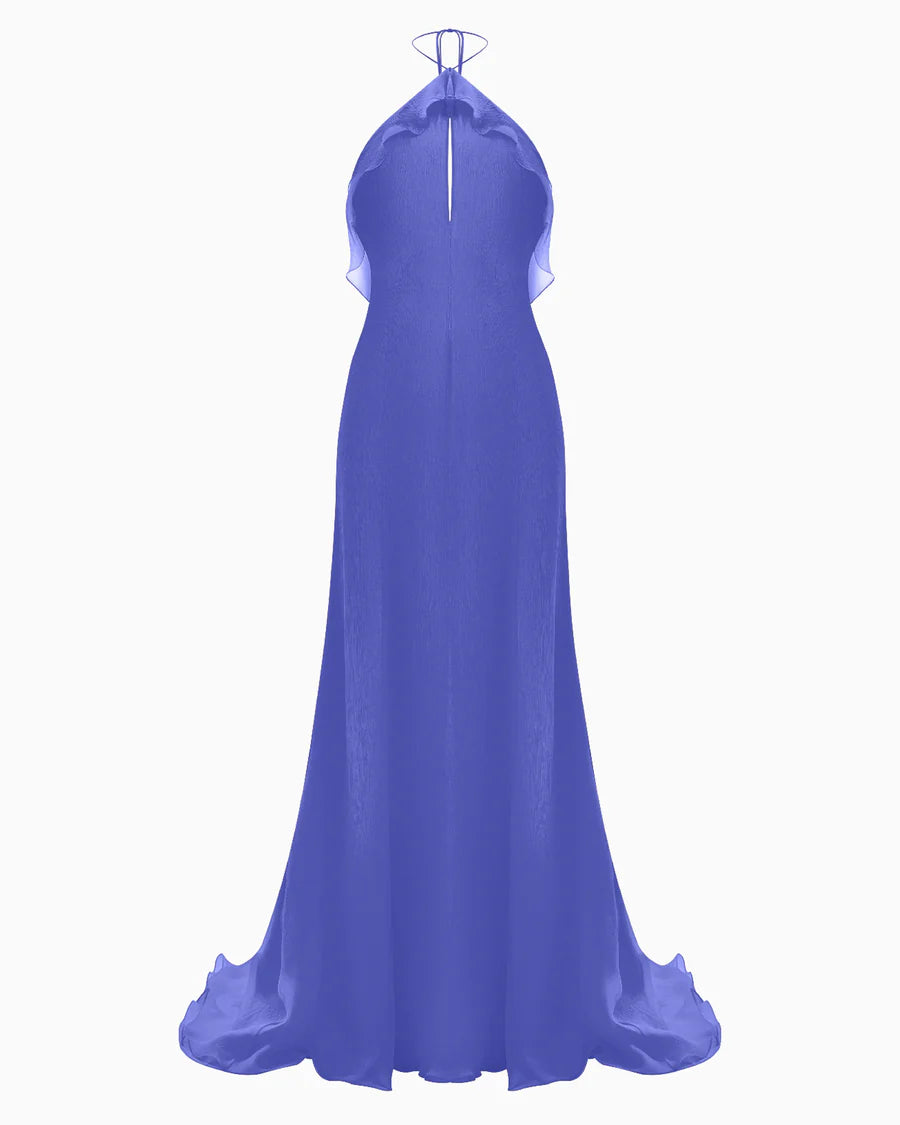 Orchid Grace De Venus is a mesmerizing silk gown in an enchanting cornflower blue, designed to radiate pure sophistication and allure.